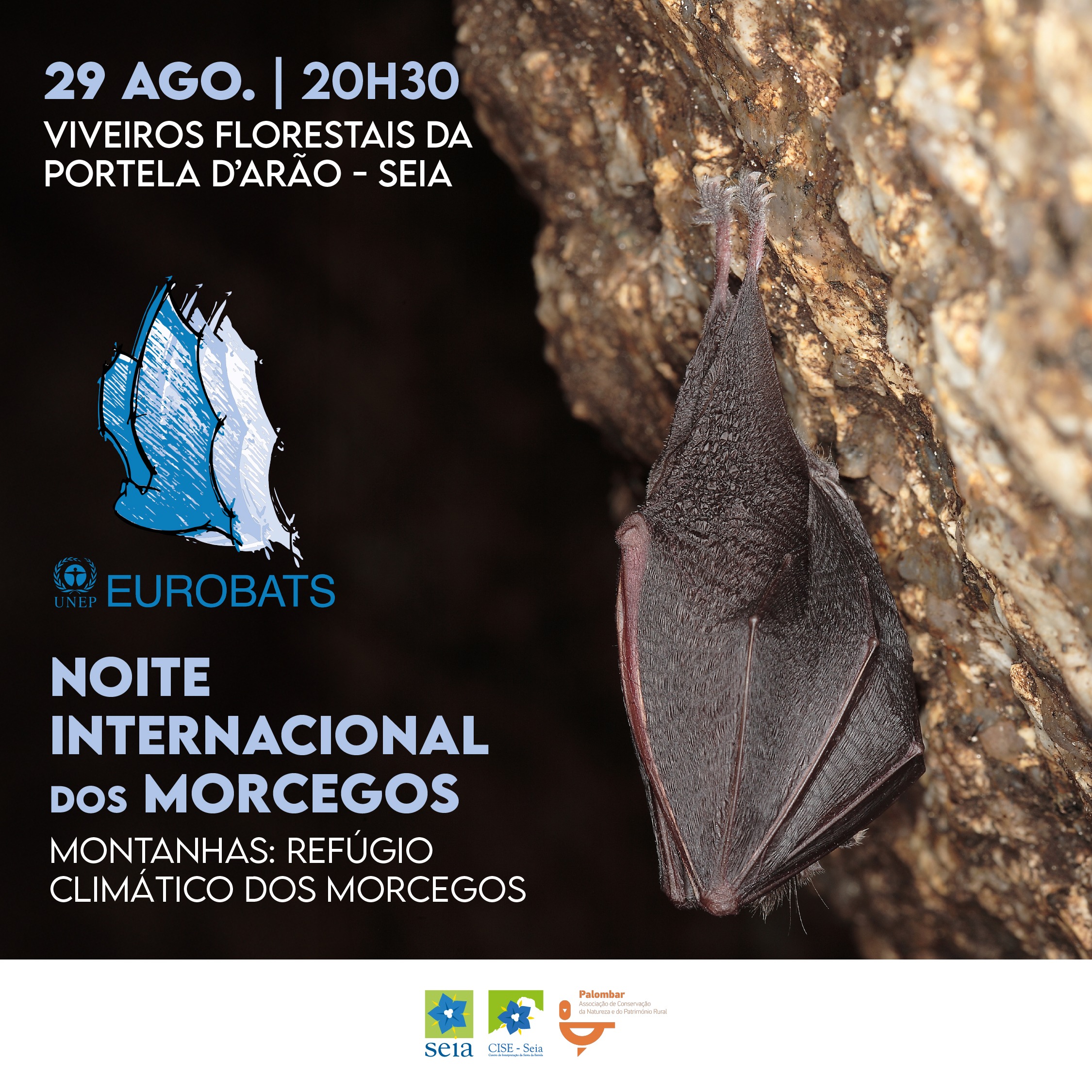 No âmbito da Noite Internacional de Morcegos (EUROBATS), o Centro de Interpretação da Serra da Estrela (CISE) e a Associação Palombar irão realizar uma sessão de observação de morcegos nos Viveiros Florestais da Portela de Arão, em Seia, no próximo dia 29 de agosto. A atividade tem como tema “Montanhas – Refúgio Climático dos Morcegos” e pretende divulgar ao público a diversidade e ecologia deste grupo de animais na serra da Estrela, sendo orientada por Helena Raposeira e Pedro Horta.