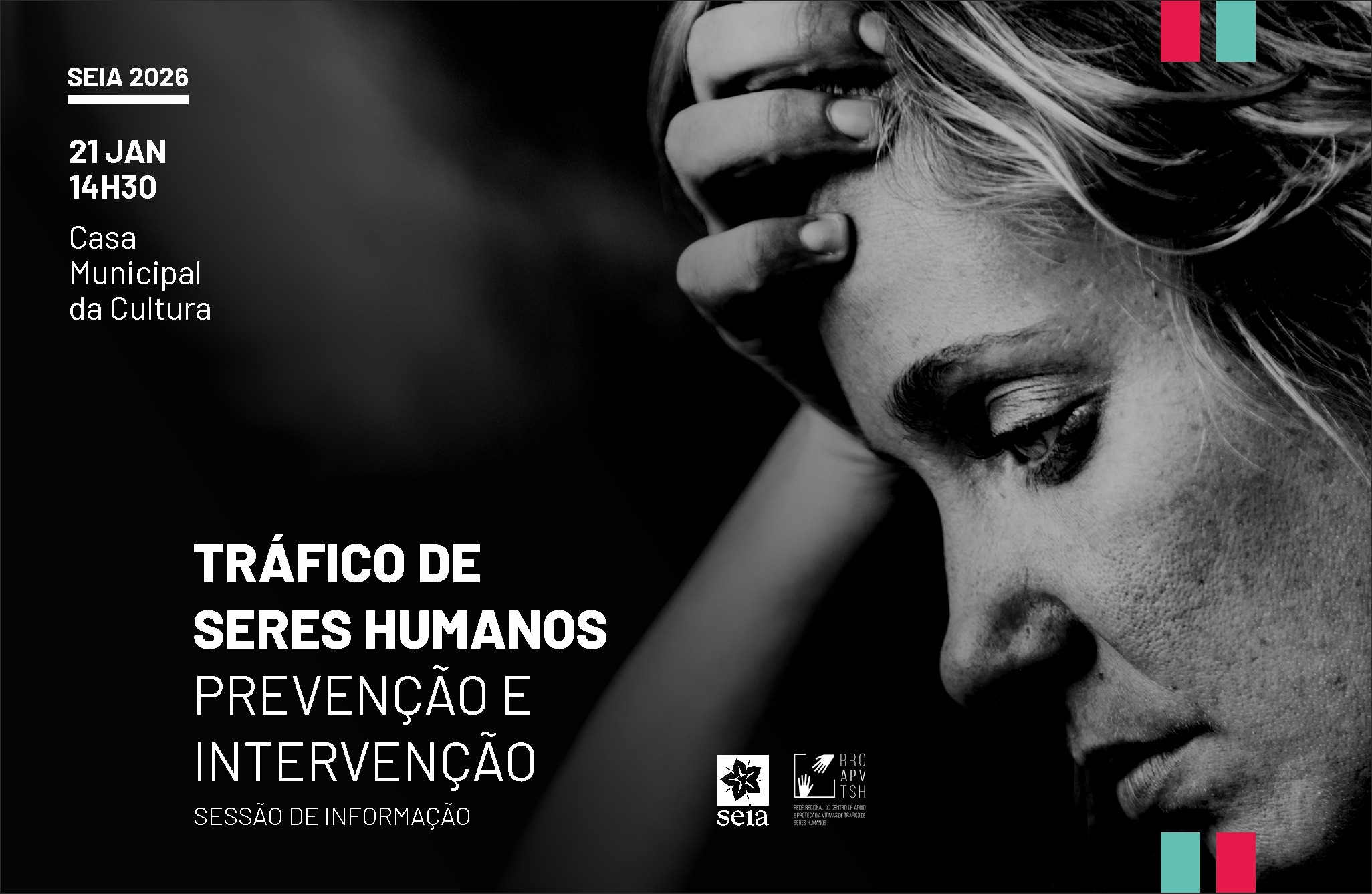 A Casa Municipal da Cultura acolhe, no próximo dia 21 de janeiro, pelas 14h30, a sessão de informação “Tráfico de Seres Humanos: Prevenção e Intervenção”, uma iniciativa dirigida à capacitação dos profissionais que integram a Rede Social de Seia, estando igualmente aberta a outras instituições do distrito e ao público em geral.